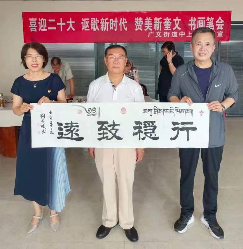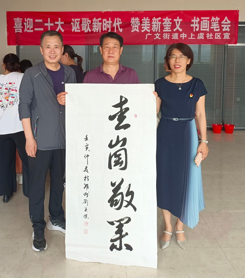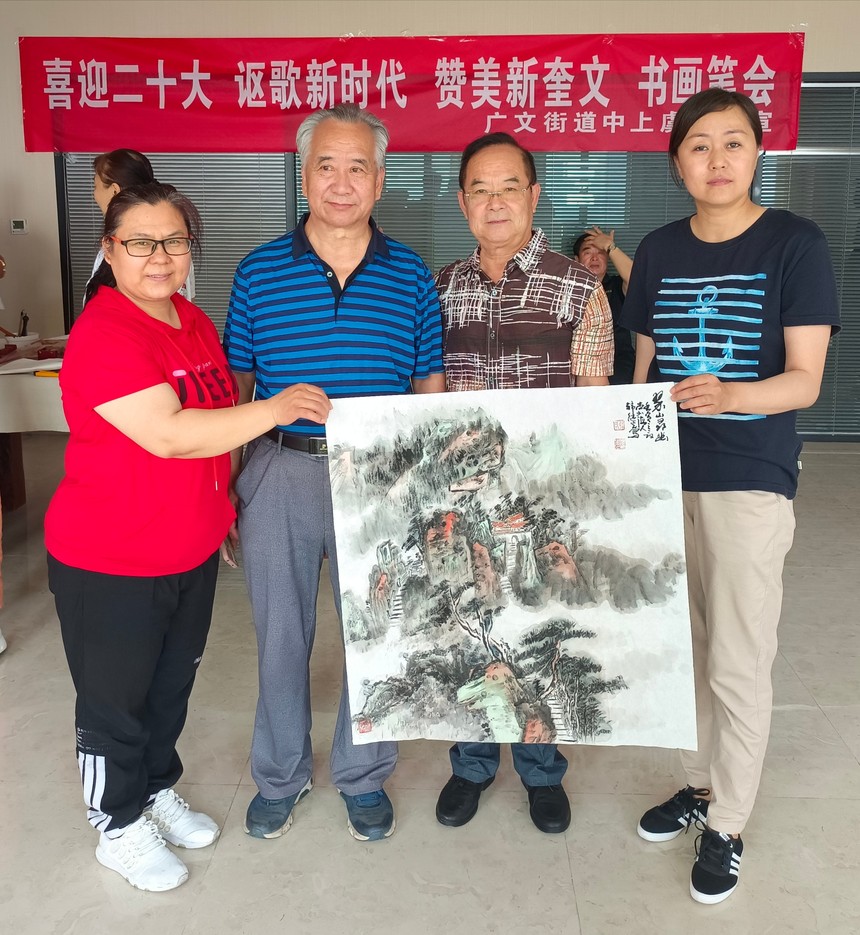 2022年6月21日,为迎接党的二十大胜利召开,在“七·一”即将到来之际,奎文区广文街道中上虞社区邀请潍坊市老年(老干部)书画研究会的领导和艺术家们走进社区,共同举办“庆七·一、喜迎二十大、讴歌新时代、赞美新奎文”书画笔会,以此来丰富社区居民文化生活的同时送上节日的问候。