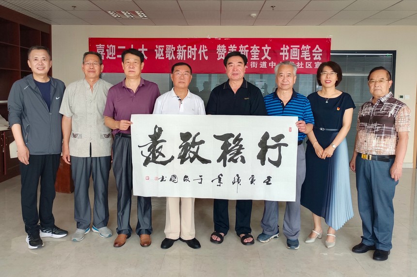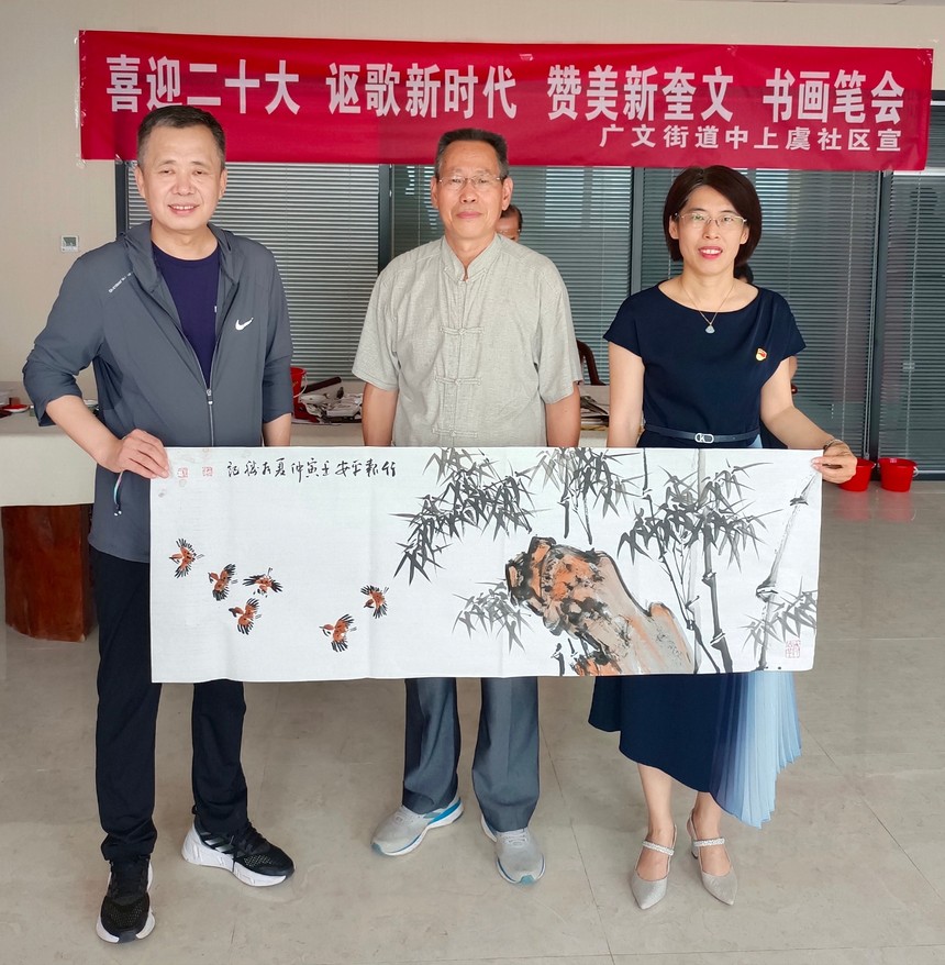 “喜迎二十大、讴歌新时代、赞美新奎文”,潍坊市老年(老干部)书画研究会走进“中上虞社区”举办书画笔会!