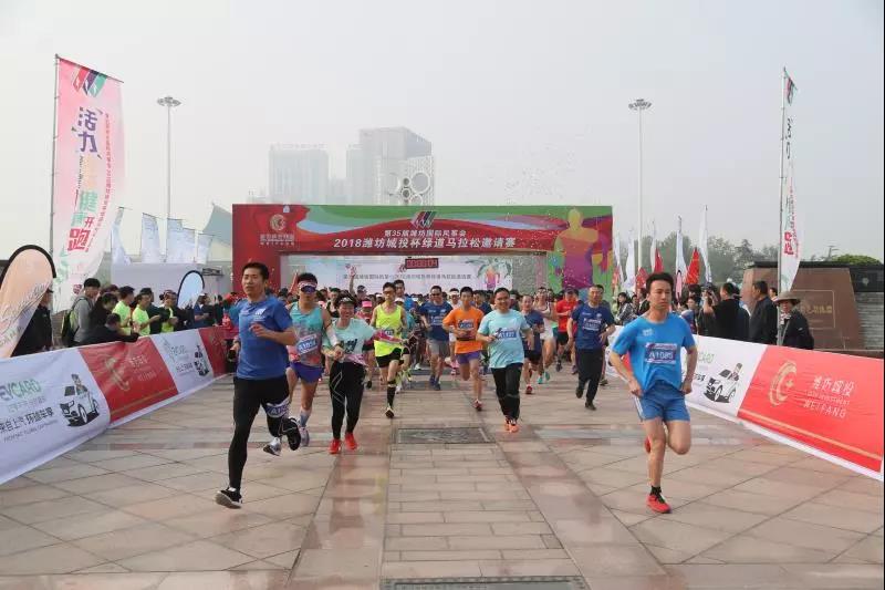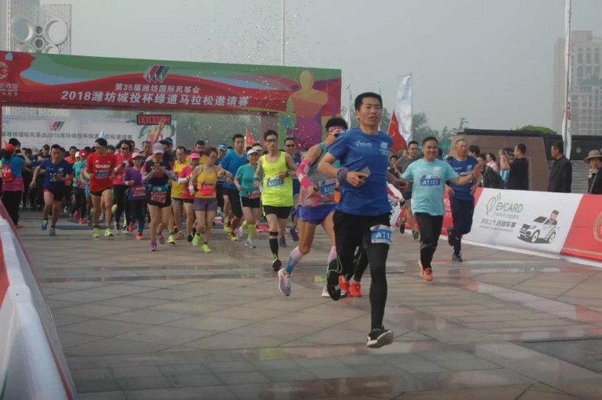 4月30日,第35届潍坊国际风筝会绿道马拉松邀请赛在风筝广场开跑。